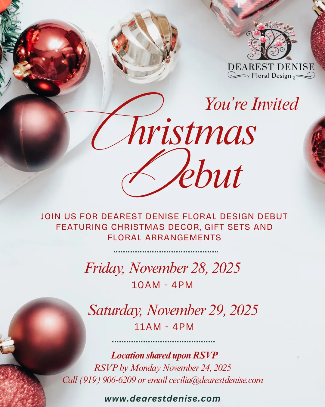 At Dearest Denise Floral Design, we love bringing people together through creativity and connection. From floral arrangement workshops and décor classes to seasonal host parties, our events are designed to inspire, relax, and let your inner designer bloom. Come create, celebrate, and leave with something beautiful—both in your hands and in your heart.